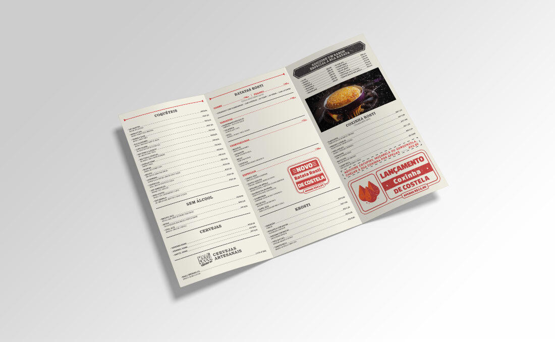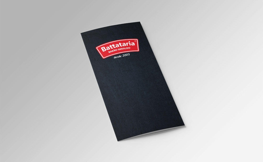Desenvolvimento dos cardápios do Restaurante Battataria Barão Geraldo em Campinas. O cardápio foi impresso em tamanho A3 com acabamento fosco.